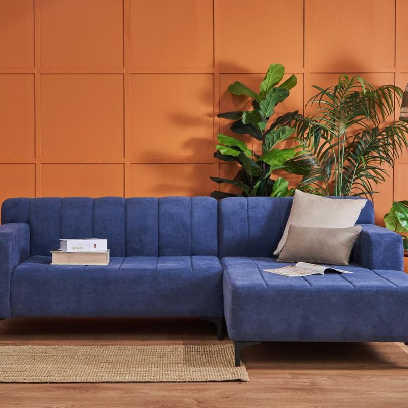 MueblesSalaSalasSofá Esquinero Derecho Tapizado en Tela Azul Resistente a Uso Rudo. Estructura de Madera Sólida