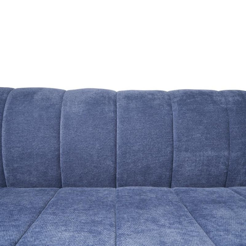 Sofá Esquinero Derecho Tapizado en Tela Azul Resistente a Uso Rudo. Estructura de Madera Sólida