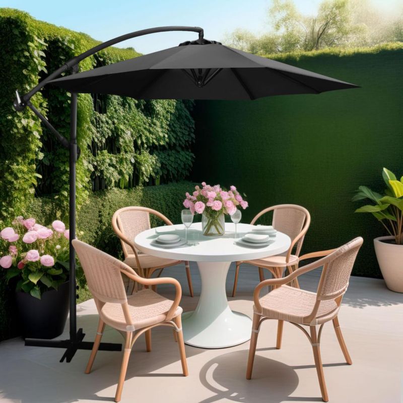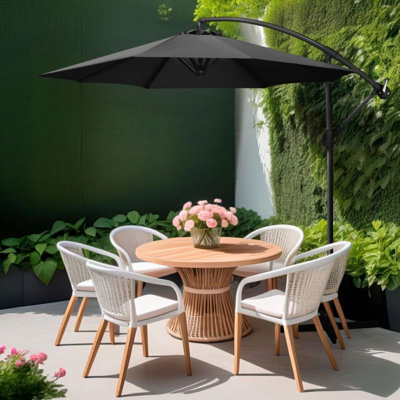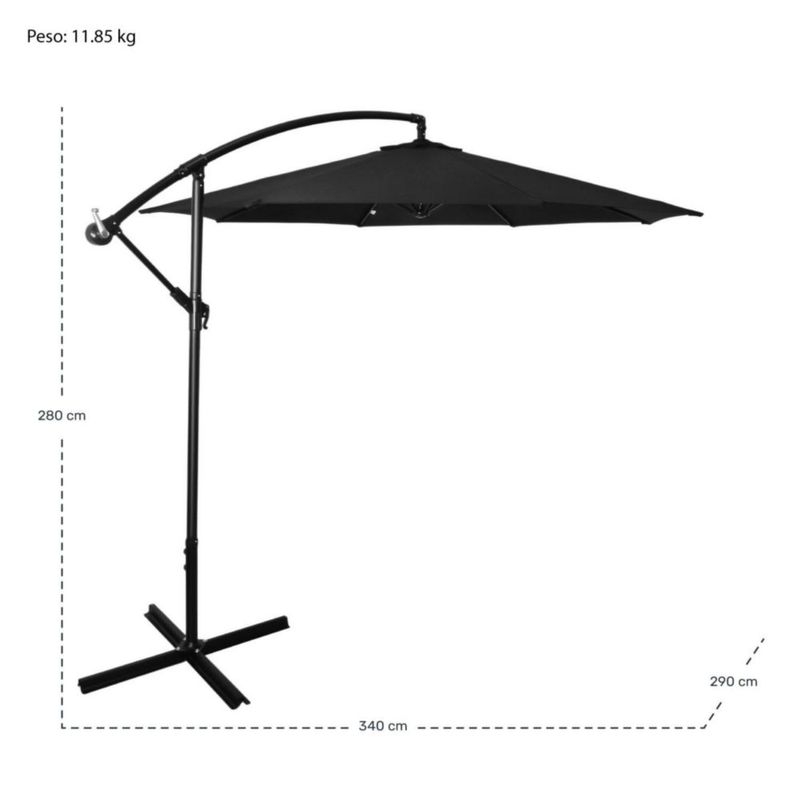 Sombrilla Full Color Negro Exterior Lujo 2.9m + Base Contrapeso Jardimex