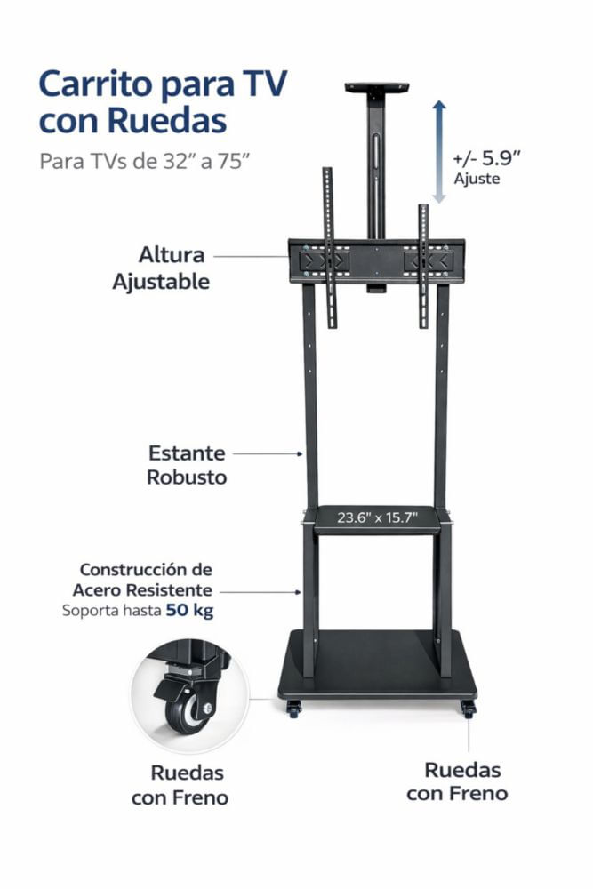 Soporte con Ruedas Audiobahn Ajustable para Pantalla TV 32 a 75 Pulgadas AFT3275R