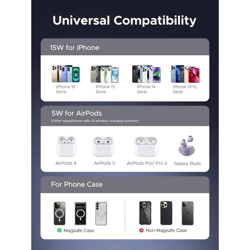 Soporte de carga magnético Ugreen 2 en 1 de 15W Qi2