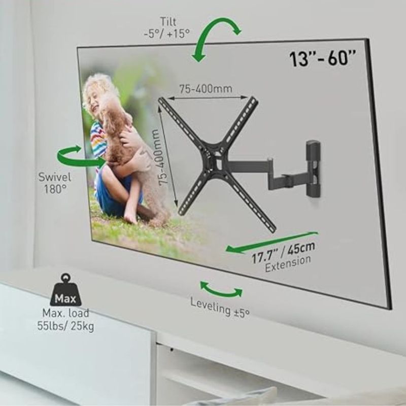SOPORTE DE PARED PARA TV CON MOVIMIENTO COMPLETO - EXTENSION 13 A 65 PULGADAS