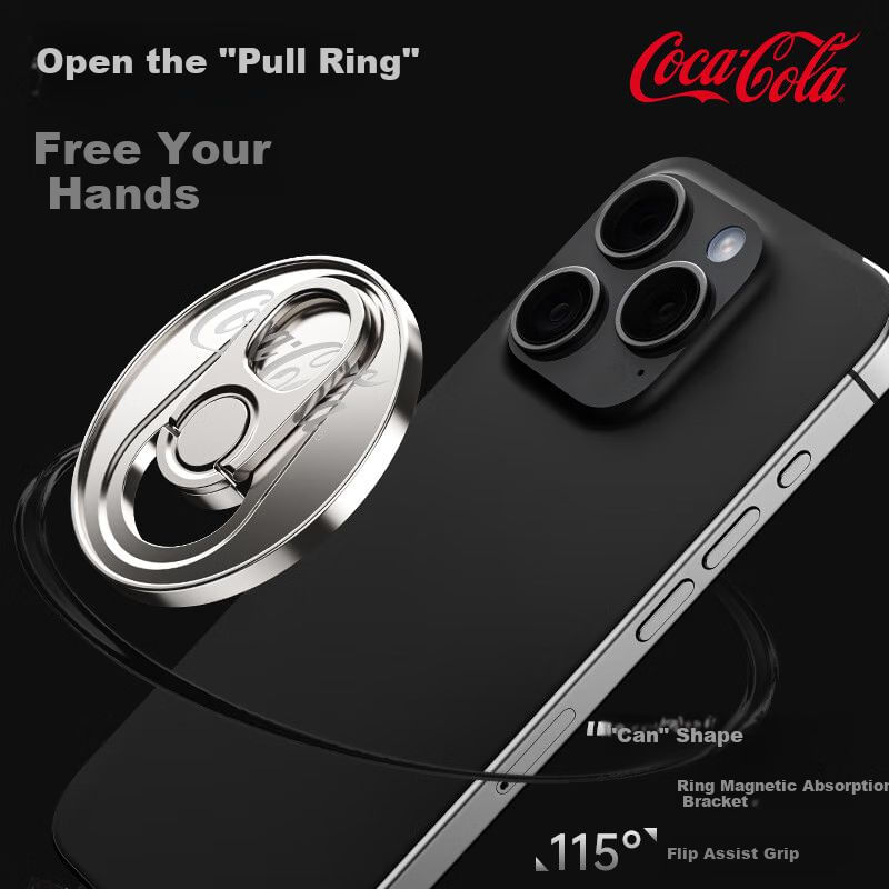 TelefoníaAccesorios para celularesSoportesSoporte magnético Coca-Cola T14 con anillo sujetador plata