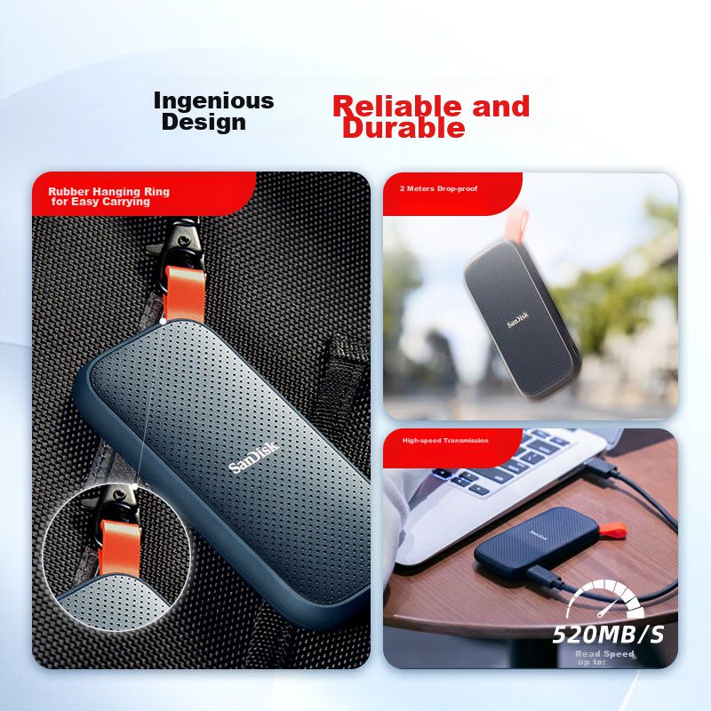 CómputoAlmacenamientoDiscos DurosSSD SanDisk E30 480GB Tipo-C Negro