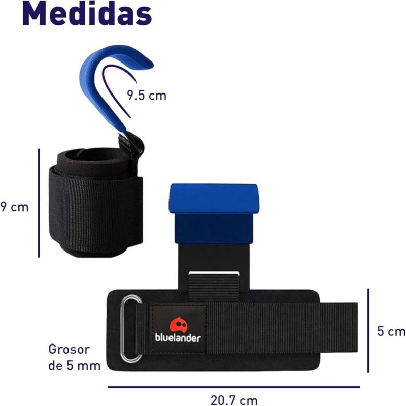 Straps para Gym Bluelander para Levantamiento de Pesas con Muñequera Ajustable de Velcro Azul