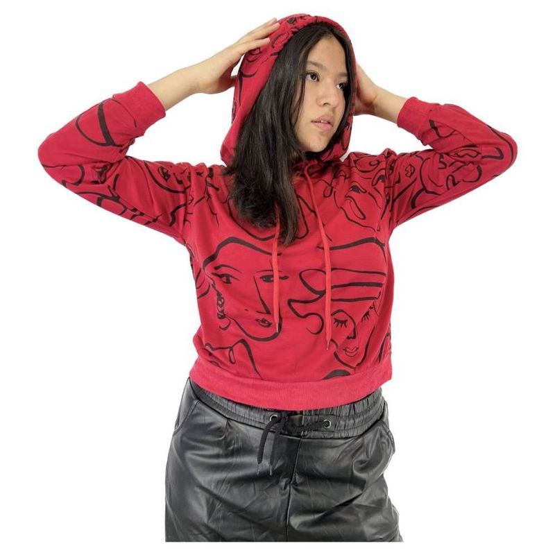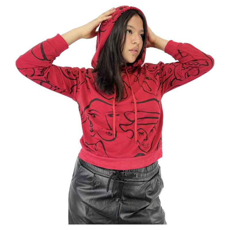 RopaRopa de DamaSudaderas y SuéteresSudadera con gorro caras estampadas roja