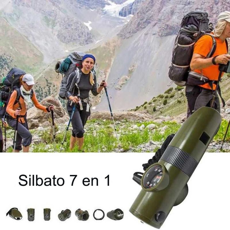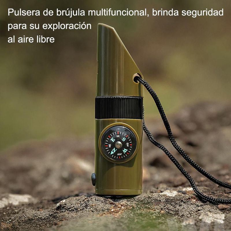 Suministros de supervivencia para exteriores, silbato 7 en 1, multifuncional, portátil, brújula de emergencia, lupa, linterna, termómetro.HOGAWAY