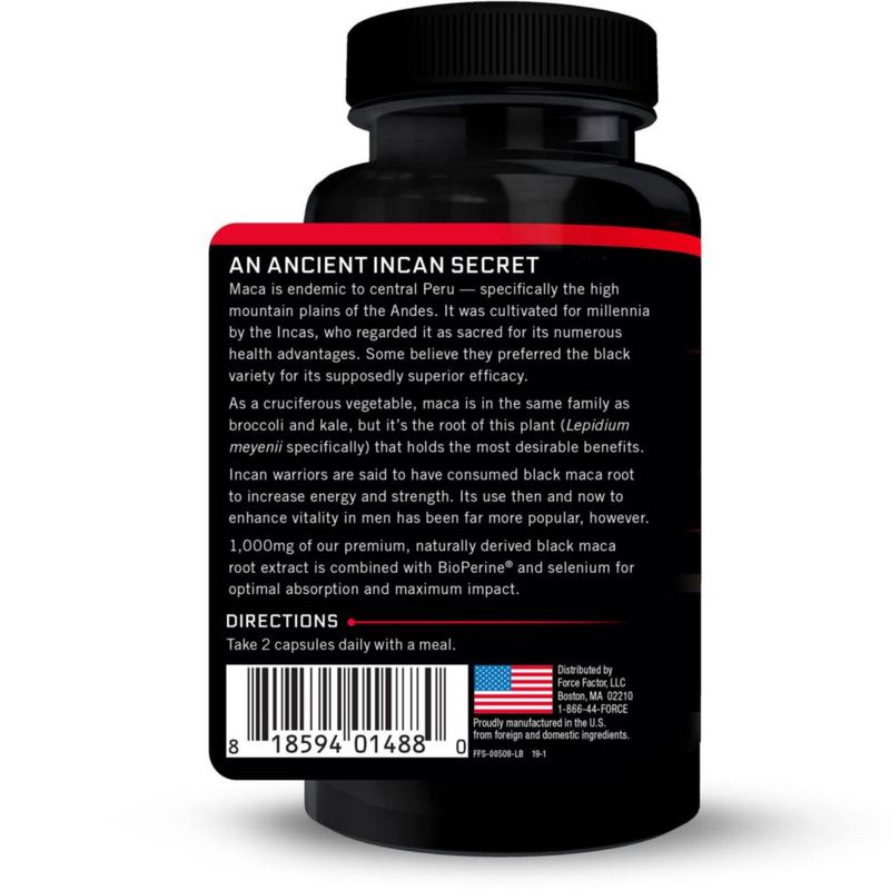 Suplemento Force Factor de raíz de maca negra 1000 mg 60 cápsulas