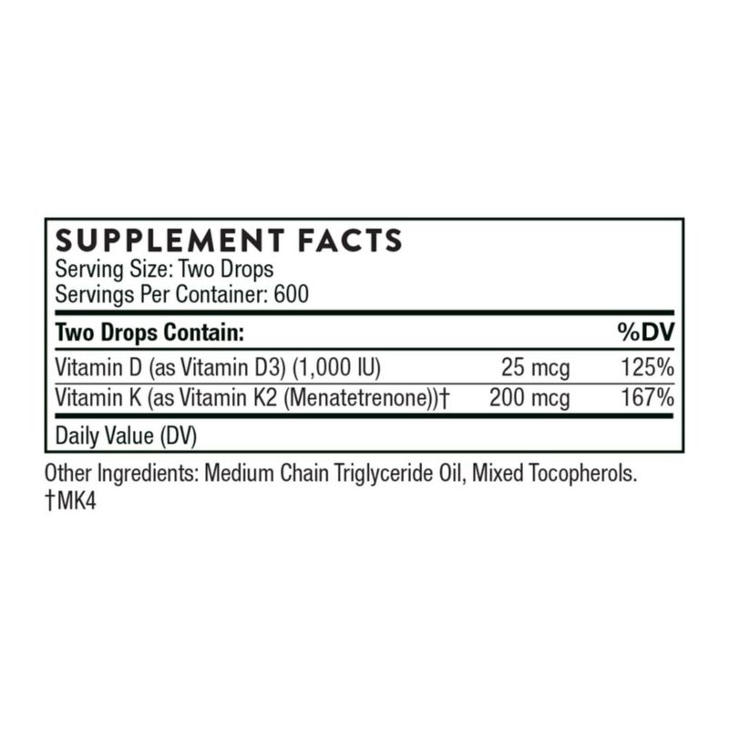 Suplemento líquido de vitamina D3 + K2 THORNE de 30 ml con dispensador