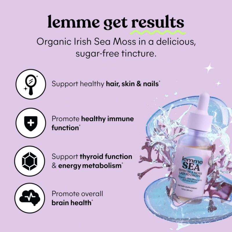 Suplemento líquido orgánico Lemme Irish Sea Moss de 30 ml con vitamina D3 y biotina