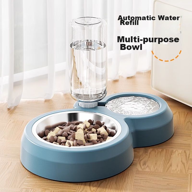 SWEET WAVES Comedero Automático Doble de Acero Inoxidable con Dispensador de Agua 550 ml