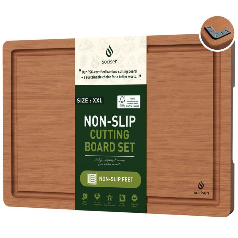 Línea blancaElectrodomésticosEspecializadosTabla de cortar de bambú extragrande con patas antideslizantes y bloque de carnicero para sobre el fregadero, bonita tabla de co