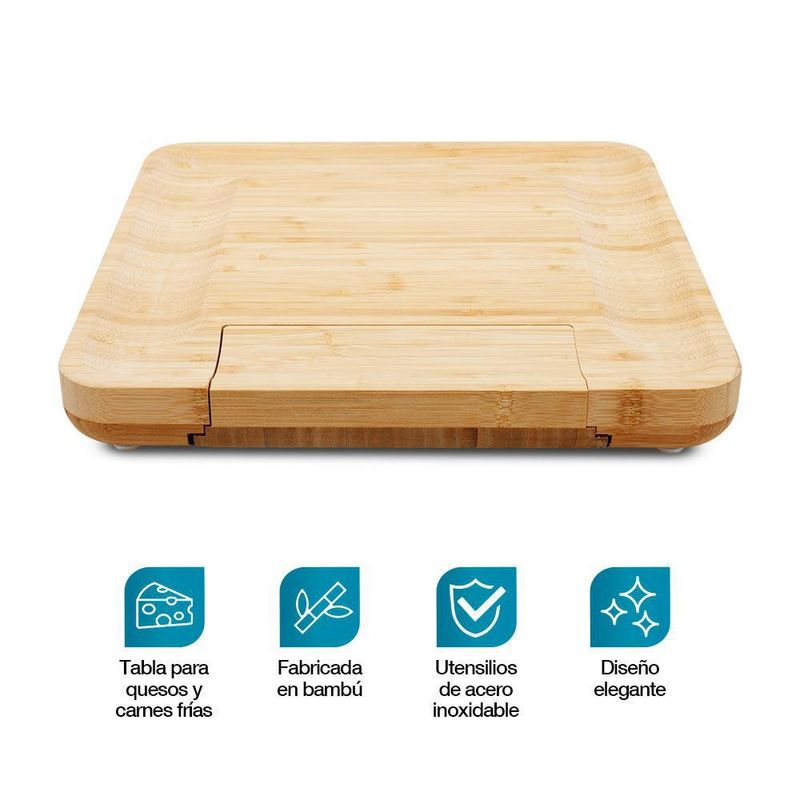 HogarCocinaUtensiliosTabla para Quesos y Carnes Frías de Bambú con Accesorios