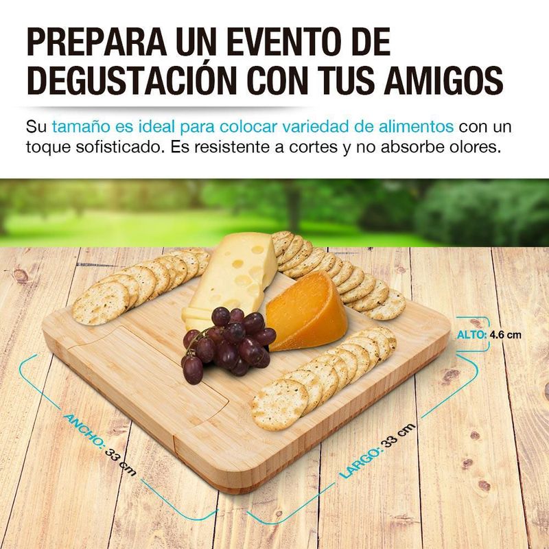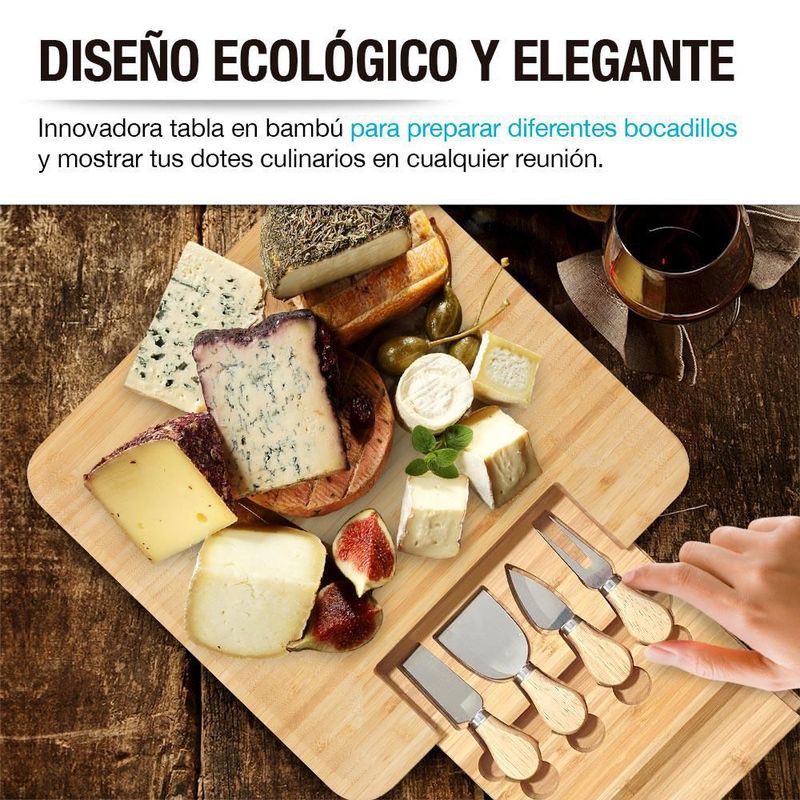 Tabla para Quesos y Carnes Frías de Bambú con Accesorios