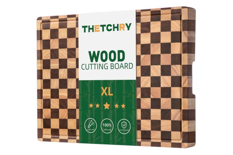 Tablas de cortar THETCHRY para cocina, extragrandes, para estufa, de madera de acacia a cuadros con ranuras para jugos, bloque d