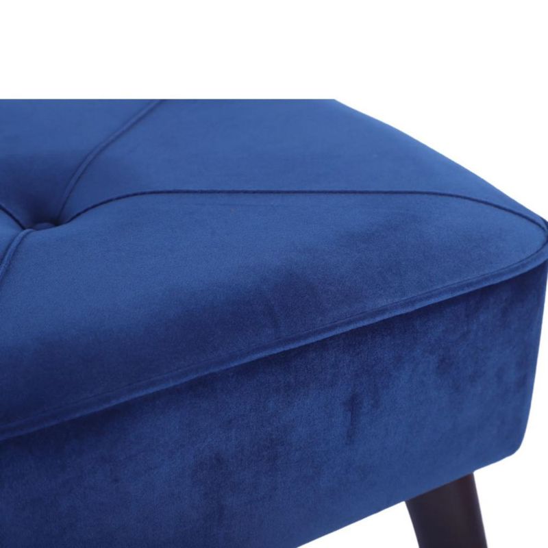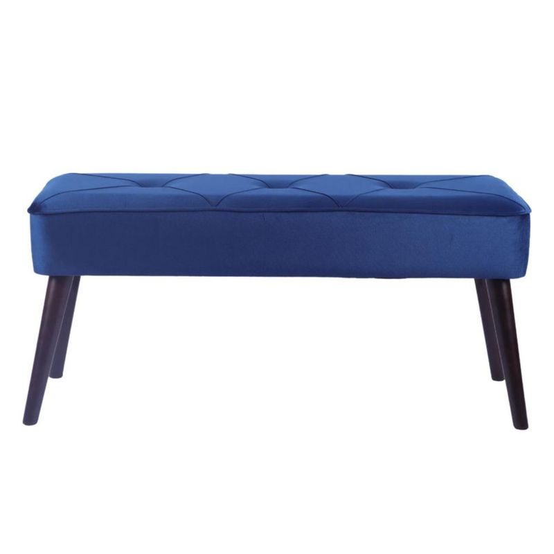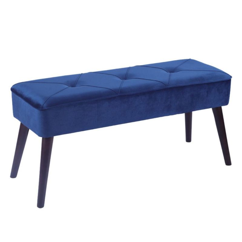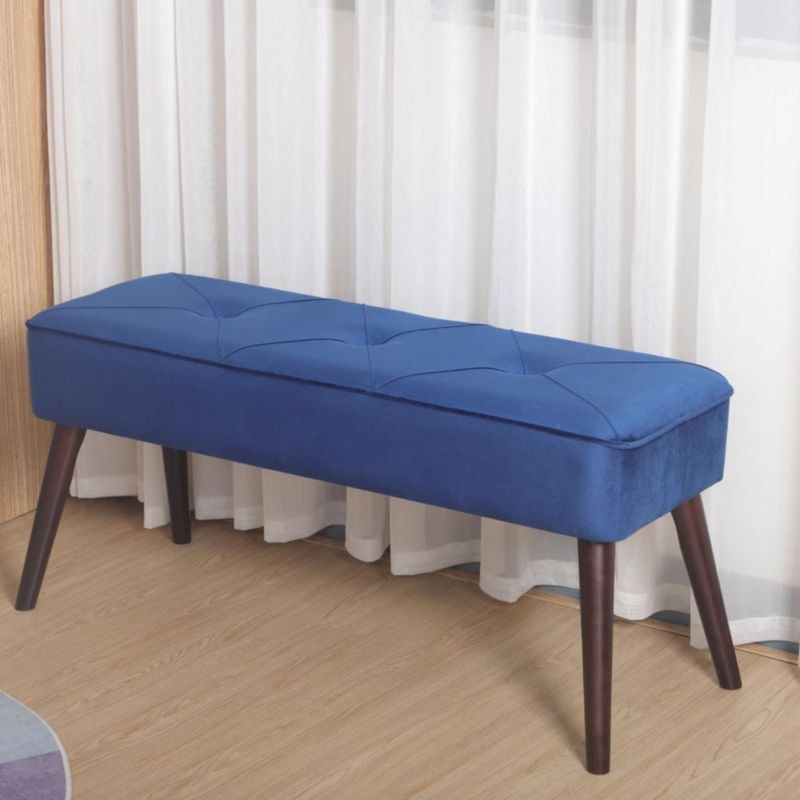 MueblesSalaPuffs y TaburetesTaburete Tapizado en Terciopelo Azul con Patas de Madera de Caucho de Nogal y Marco de Madera