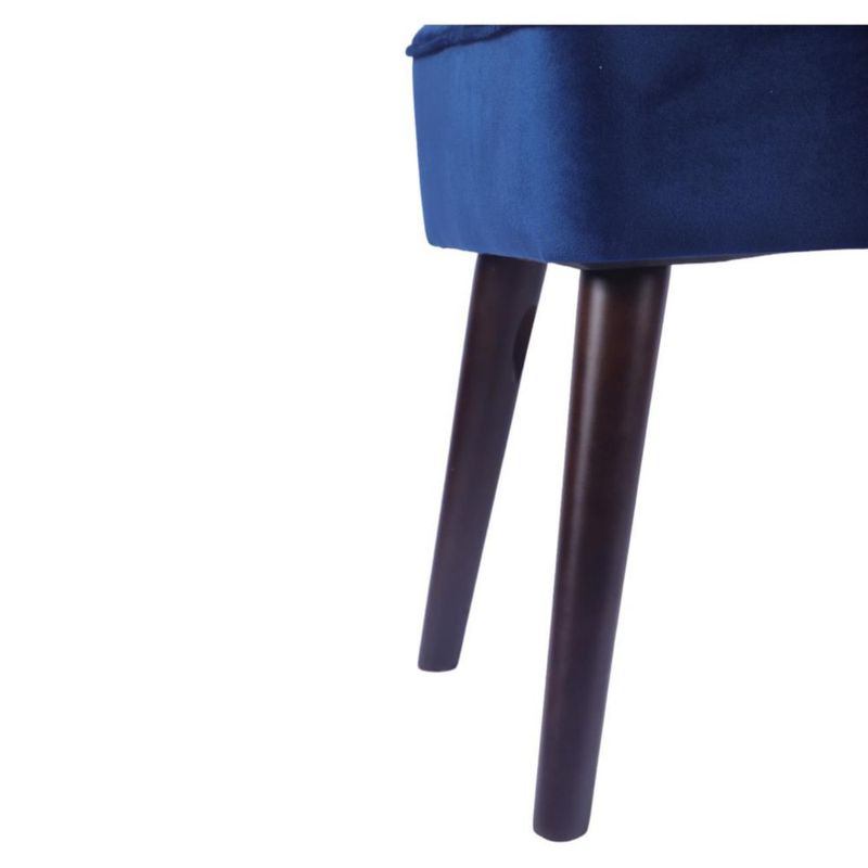 Taburete Tapizado en Terciopelo Azul con Patas de Madera de Caucho de Nogal y Marco de Madera