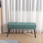 MueblesSalaPuffs y TaburetesTaburete Tapizado en Terciopelo Verde con Patas de Madera de Caucho de Nogal y Marco de Madera