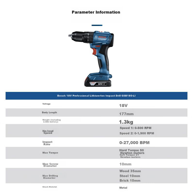 HerramientasEléctricasRotomartillos, Taladros y DestornilladoresTaladro Eléctrico Bosch Gsb185 18V Sin Escobillas 2.0Ah