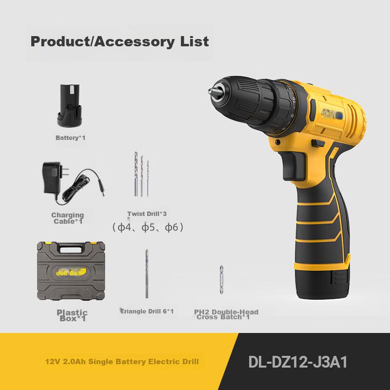 Taladro Eléctrico Deli Dl-Dz12-J3A1 12V 2.0Ah