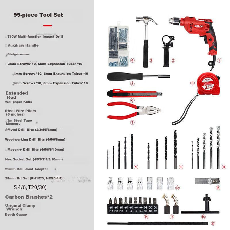 Taladro Eléctrico Delixi Ed-A1 710W 220V 99 Piezas