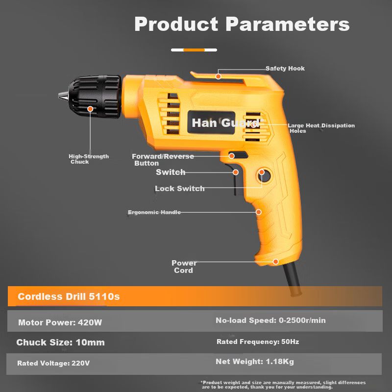 HerramientasEléctricasRotomartillos, Taladros y DestornilladoresTaladro Eléctrico Hanweishi 5110S 420W 220V