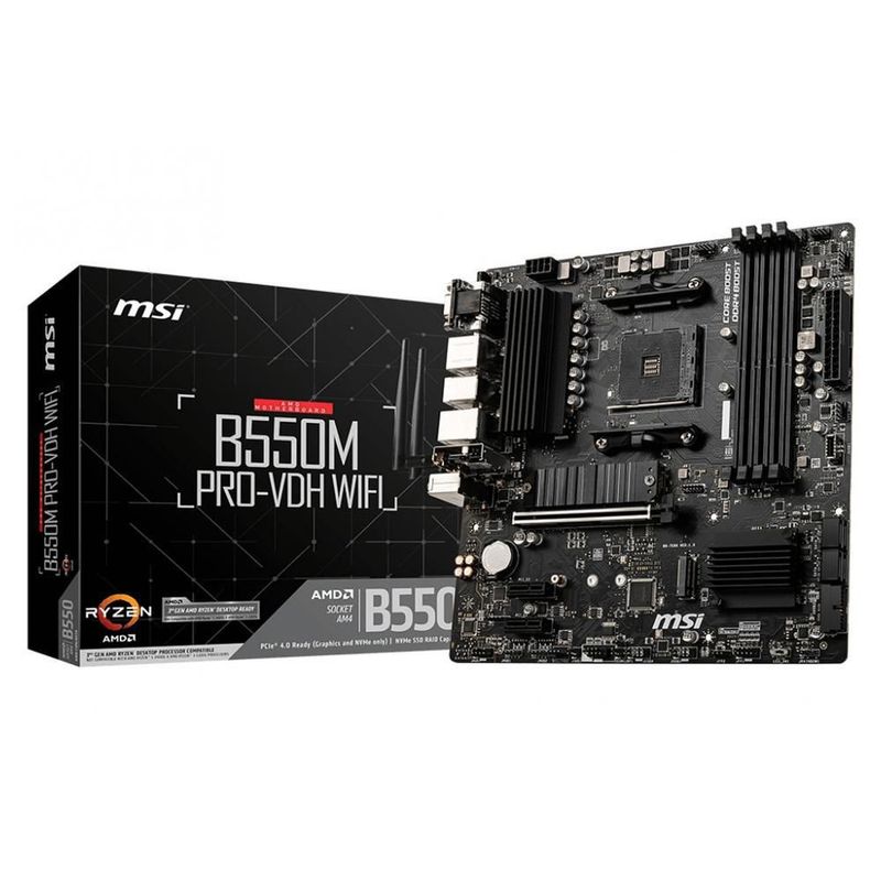 Tarjeta madre msi b550m pro-vdh wifi am4 4x ddr4 2x m.2 pcie 3.0 bt 4.2 usb-c mi