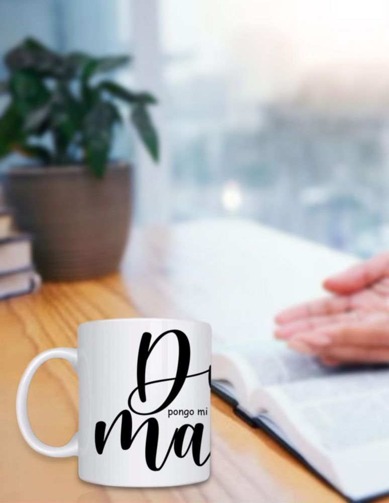 Taza de cerámica 445 ml. diseño divertido Dios pongo mi vida en tus manos regalo original