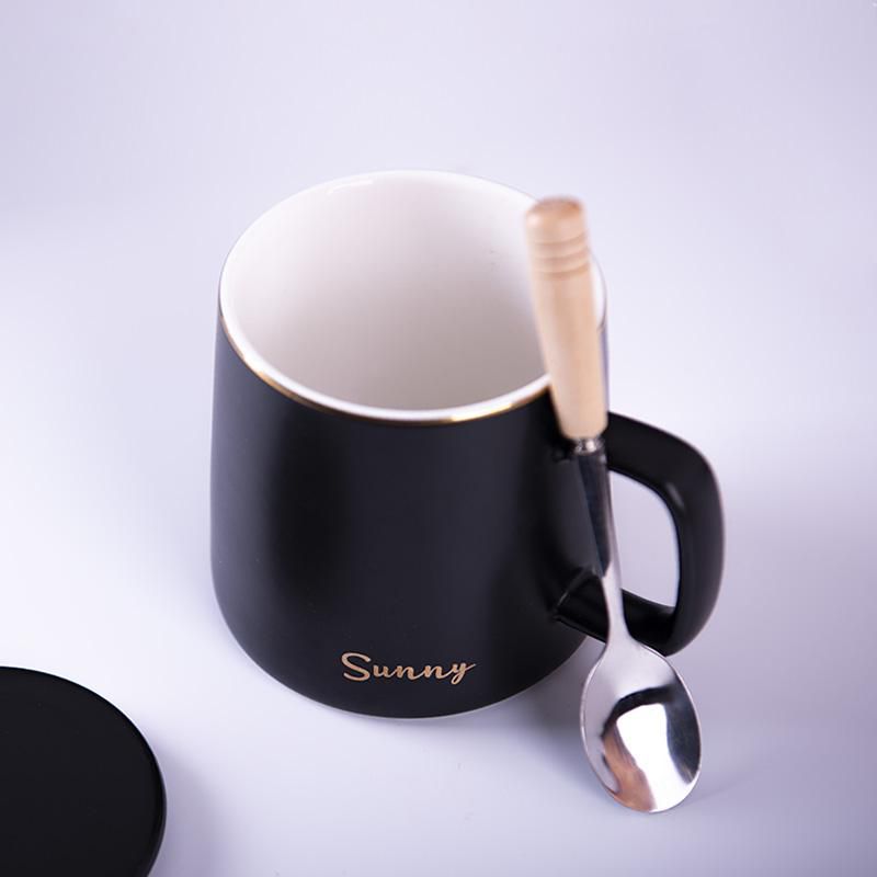 Taza de cerámica con cuchara y tapa 350ml Negro