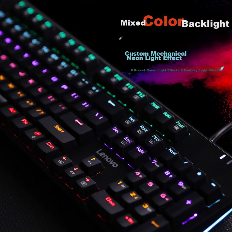 Teclado Mecánico Cableado Lenovo K104 Con Switch Azul E Iluminación Rgb