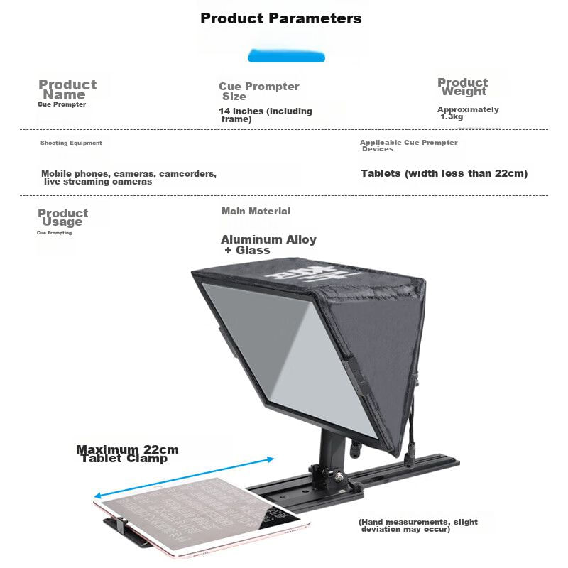 ElectrónicaAccesorios para cámarasSoportes y TripiésTeleprompter Qiyè 14 Pulgadas Plegable Portátil