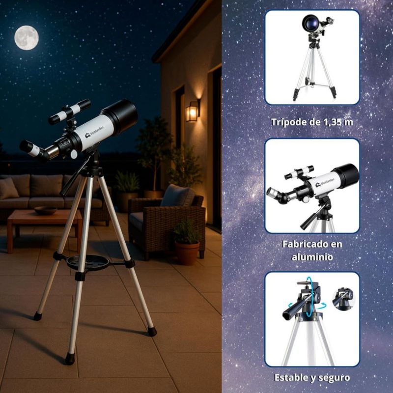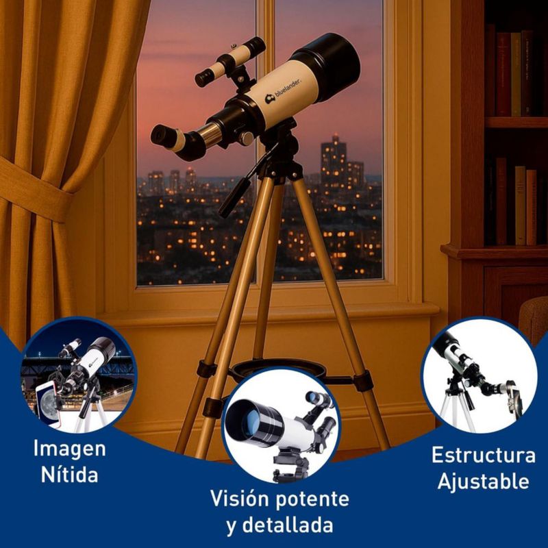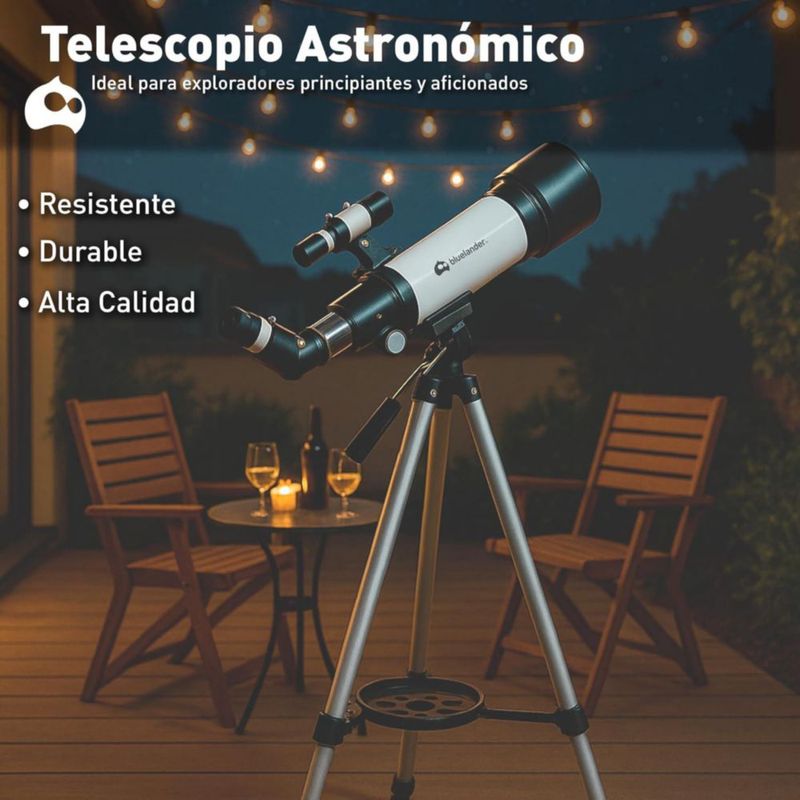 ElectrónicaAccesorios para electrónicaOtrosTelescopio Bluelander Astronómico 70 mm, Trípode 70–136 cm, Alta Definición, 2 Oculares, Lentes Barlow, Filtro Lunar, Soporte para Teléfono, (Negro).