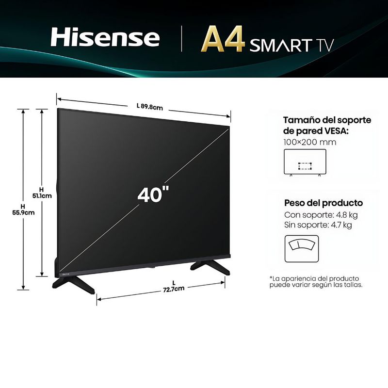 Televisor Hisense 40A4NV 40" pulgadas HD Smart TV Vidaa