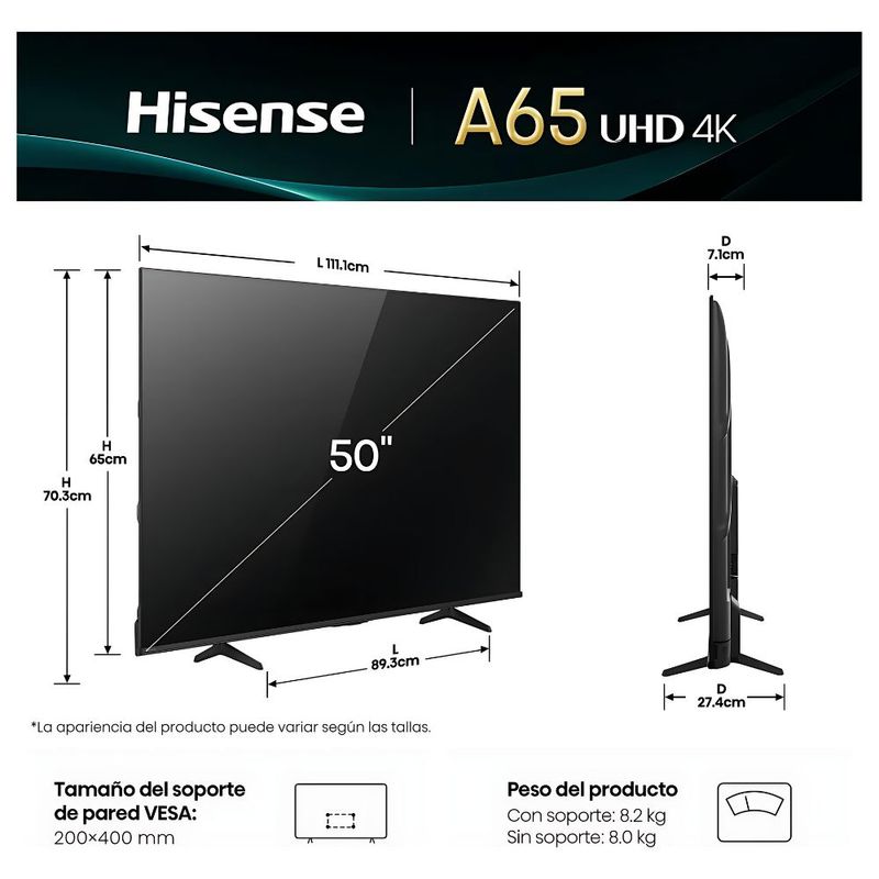 ElectrónicaTv y videoPantallasTelevisor Hisense 50A65NV 4k Vidaa