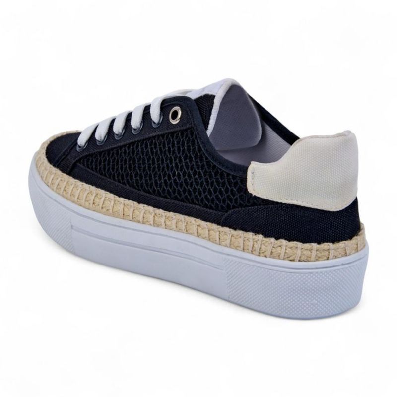 Tenis de Plataforma Casuales Negros para Dama con Cintas y Detalle Textil en Costados 467-85