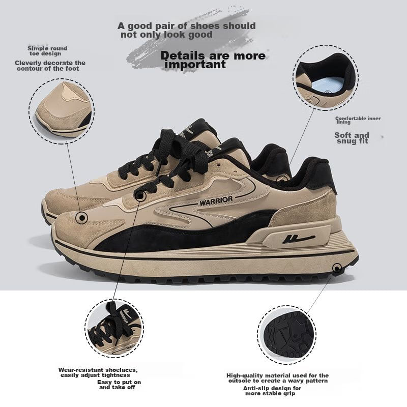 Tenis Warrior Retro Casual Aumento de Altura Cuero Natural Beige para Hombre