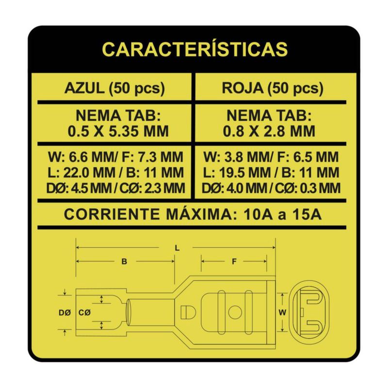 Terminal Hembra Faston Aislada 2 Tamaños 14-16 Awg Steelpro