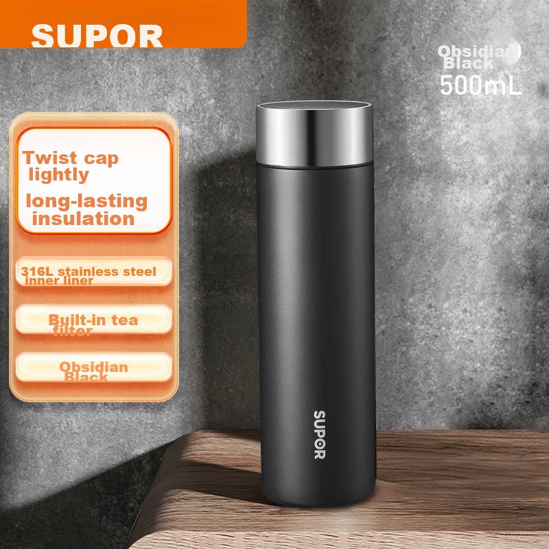 Termo acero inoxidable con doble tapa 500 ml Negro