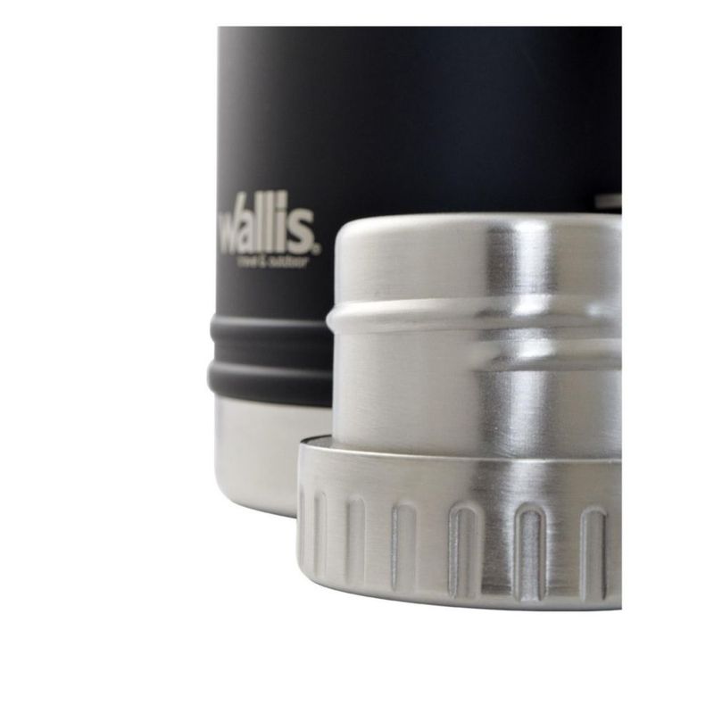 Termo de acero inoxidable, 1100 ml, negro mate con detalles en madera