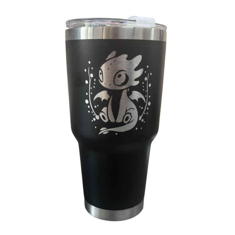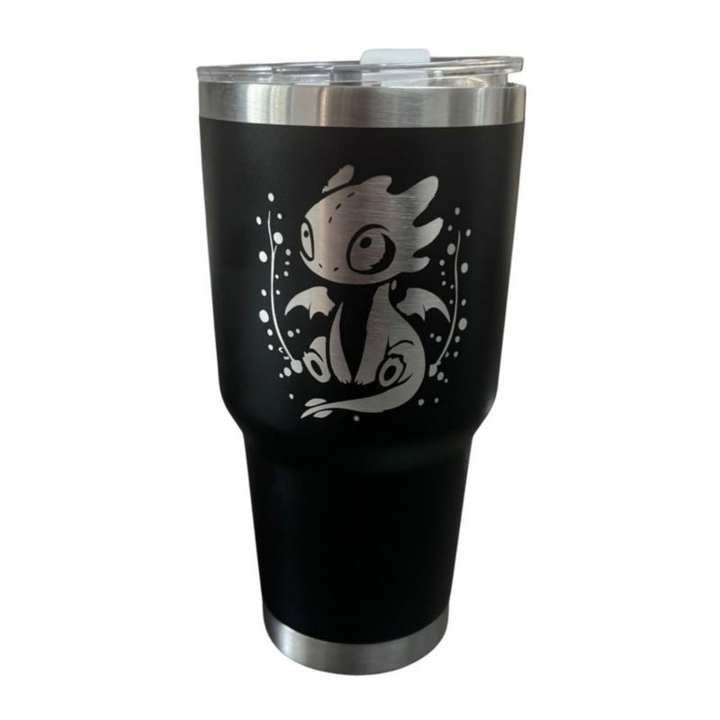 Termo de acero inoxidable color negro con diseño inspirado en Chimuelo. Capacidad es ideal para acompañarte en cualquier momento del día.