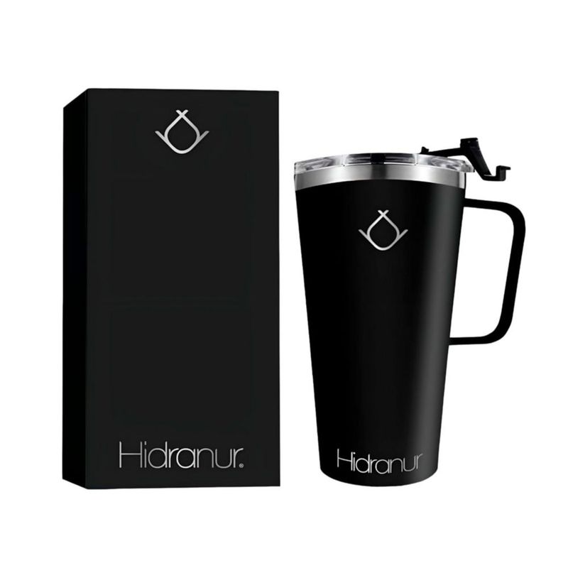 Termo de Acero Inoxidable Hidranur Negro con Doble Aislamiento, de 16 oz Con Tapa Hermetica