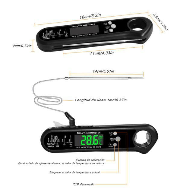 Termómetro plegable termómetro para alimentos, termómetro para barbacoa para horno de cocina, termómetro para barbacoa de carne