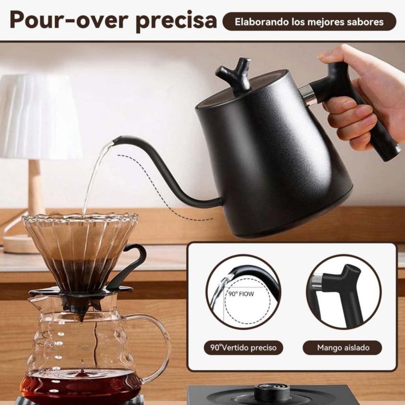 Tetera Eléctrica de Acero Inoxidable con Cuello de Cisne, Electrica de 7 Modos de Temperatura, Hervidor de Agua Eléctrico con Ap