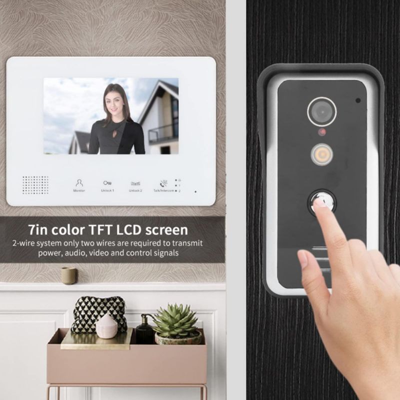 ElectrónicaAccesorios para electrónicaCasa InteligenteTimbres para Puertas, Videoportero con Visión Nocturna, de 2 Cables, Cámara de 4 Monitores de 7 Pulgadas, de Intercomunicación c