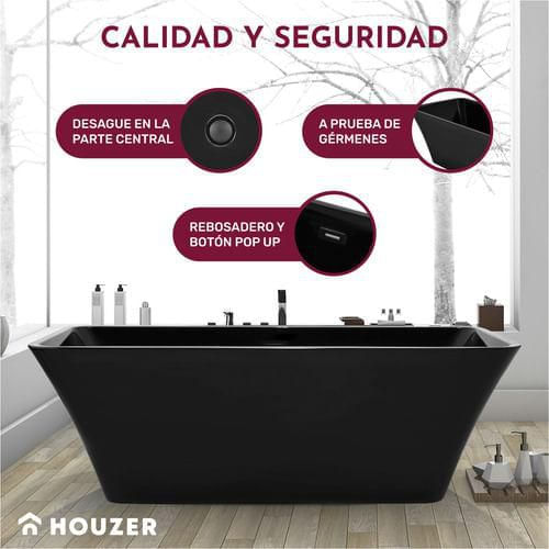 Tina Baño Premium Lujo 280l Fibra Vidrio 172x77x62 Cm Negra