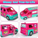 TMATCHQJOY - Juego de coche de juguete para niñas, coche de juguete portátil, furgoneta colorida con muebles, piscina y accesori