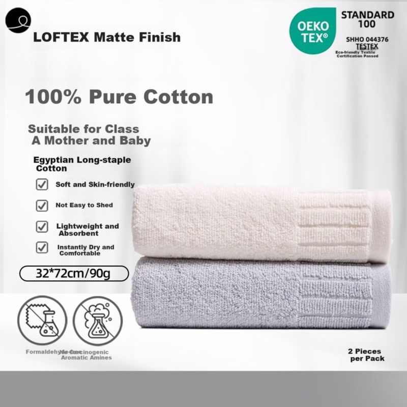 Toalla Facial Yaguang 32X72Cm Algodón Egipcio Gris Y Blanco 2Pzas