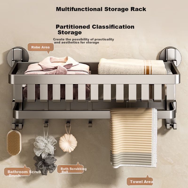 Toallero Baihan Con Ventosa Gris Oscuro Repisa Baño