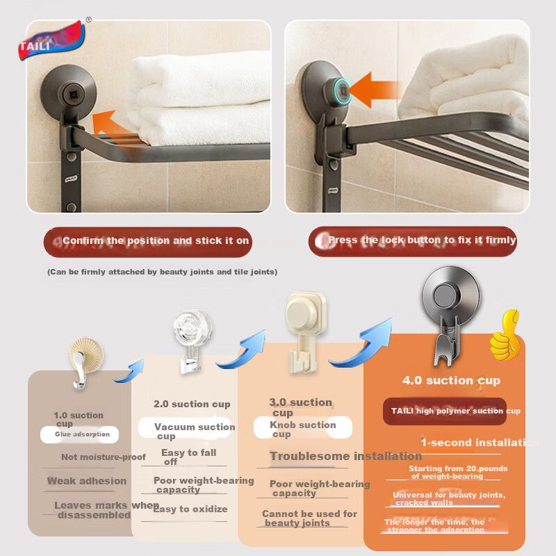 Toallero Tooli Organizador Sin Taladrar Con Ventosas Y Ganchos