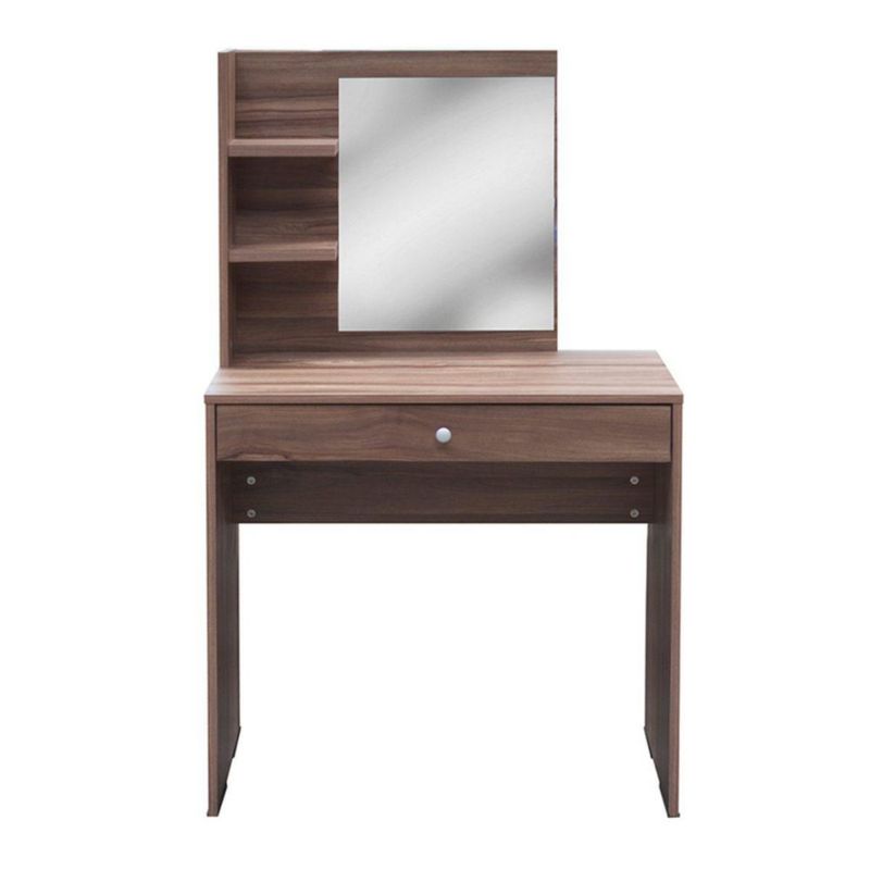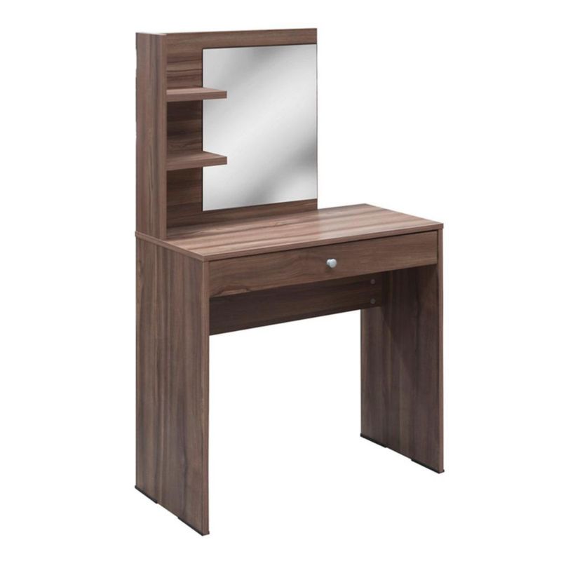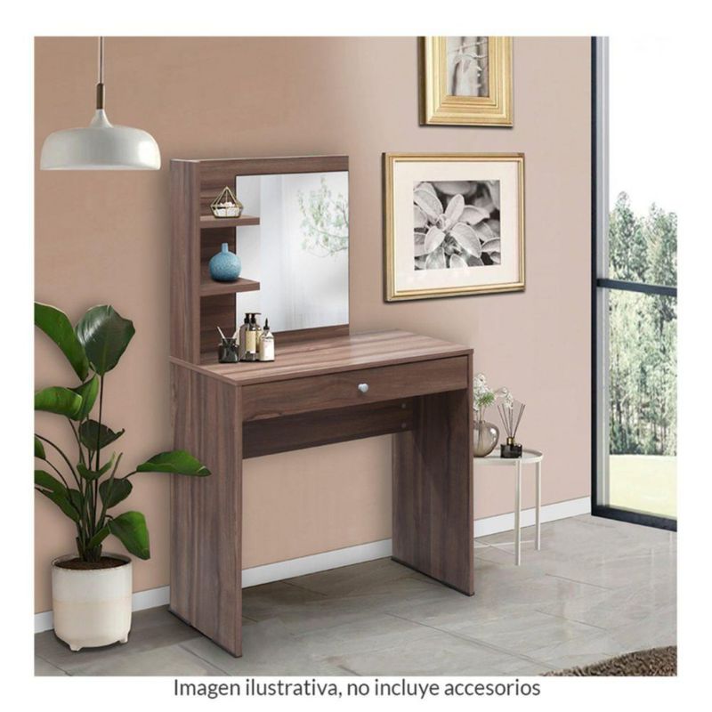 Tocador Para Recamara Con Espejo Novak | Tocador Con Amplio Cajon y Dos Repisas | Elaborado en Melamina | Color Nogal